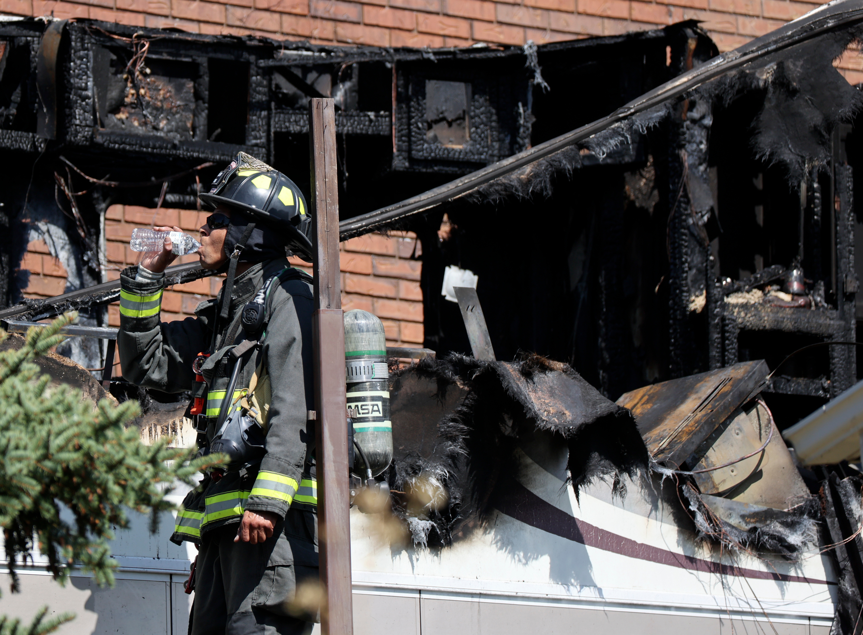 He tried and failed to get into three different homes after that, then climbed onto the roof of a fourth house, where he apparently tried to enter the house by hacking off the swamp cooler.