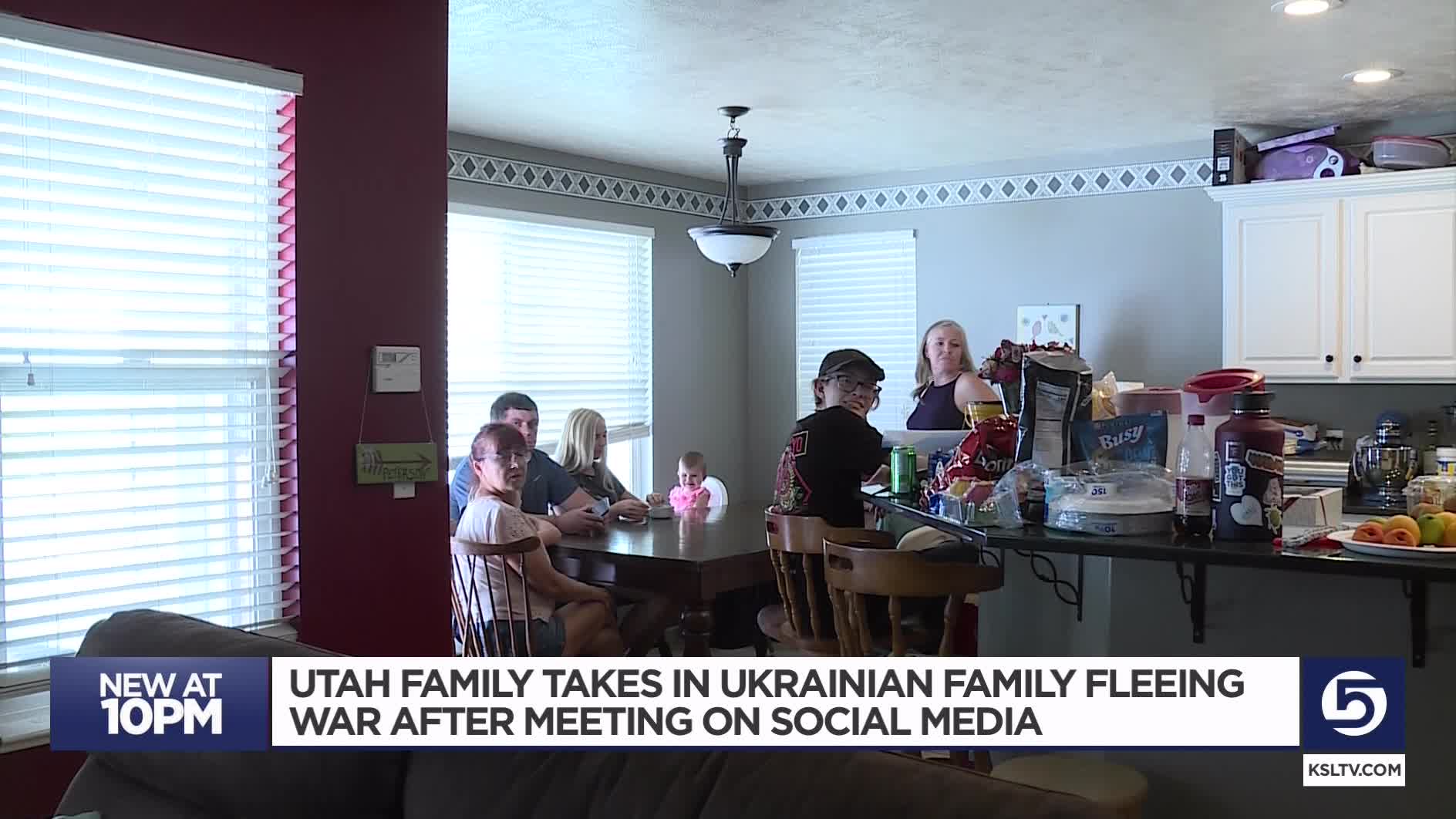 SYRACUSE — A family from south central Ukraine is now calling Utah their home after meeting a Utah couple online who were total strangers. That couple welcomed the family of five, plus their dog, into their Syracuse home.