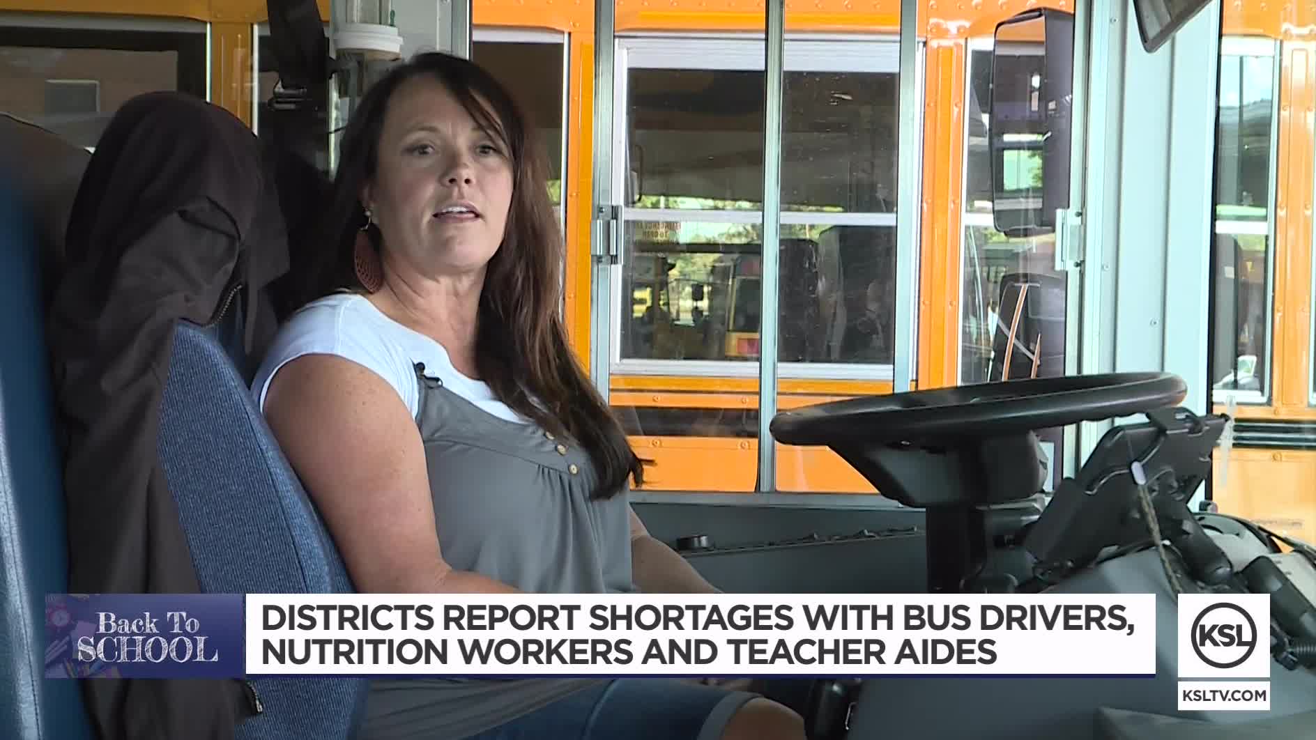 Other nearby districts report similar shortages. The Jordan School District says it needs about 20 bus drivers, while the Murray School District needs 30 paraprofessionals. The Canyons School District is short about 28 nutrition workers and 29 teacher aides.