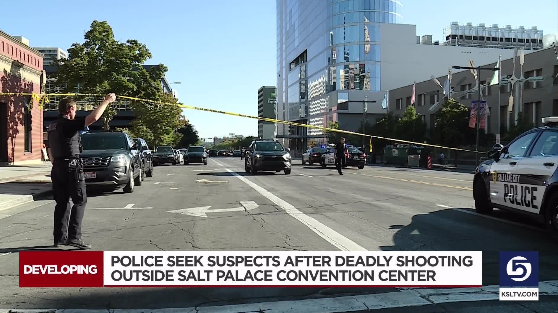 The shooting occurred shortly after 3:15 p.m. in the middle of West Temple and 150 South. Police were still looking for suspects Saturday night.