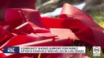 "We wanted to flood the neighborhood with a sea of red — that's Eddie's favorite color!" said Beth Fielding, who helped to mobilize other neighbors and friends to come out to a church parking lot to help cut and tie red ribbons in memory of Edison and in support of the boy's family. "They still have a very long road to go until they're home and starting their healing process."