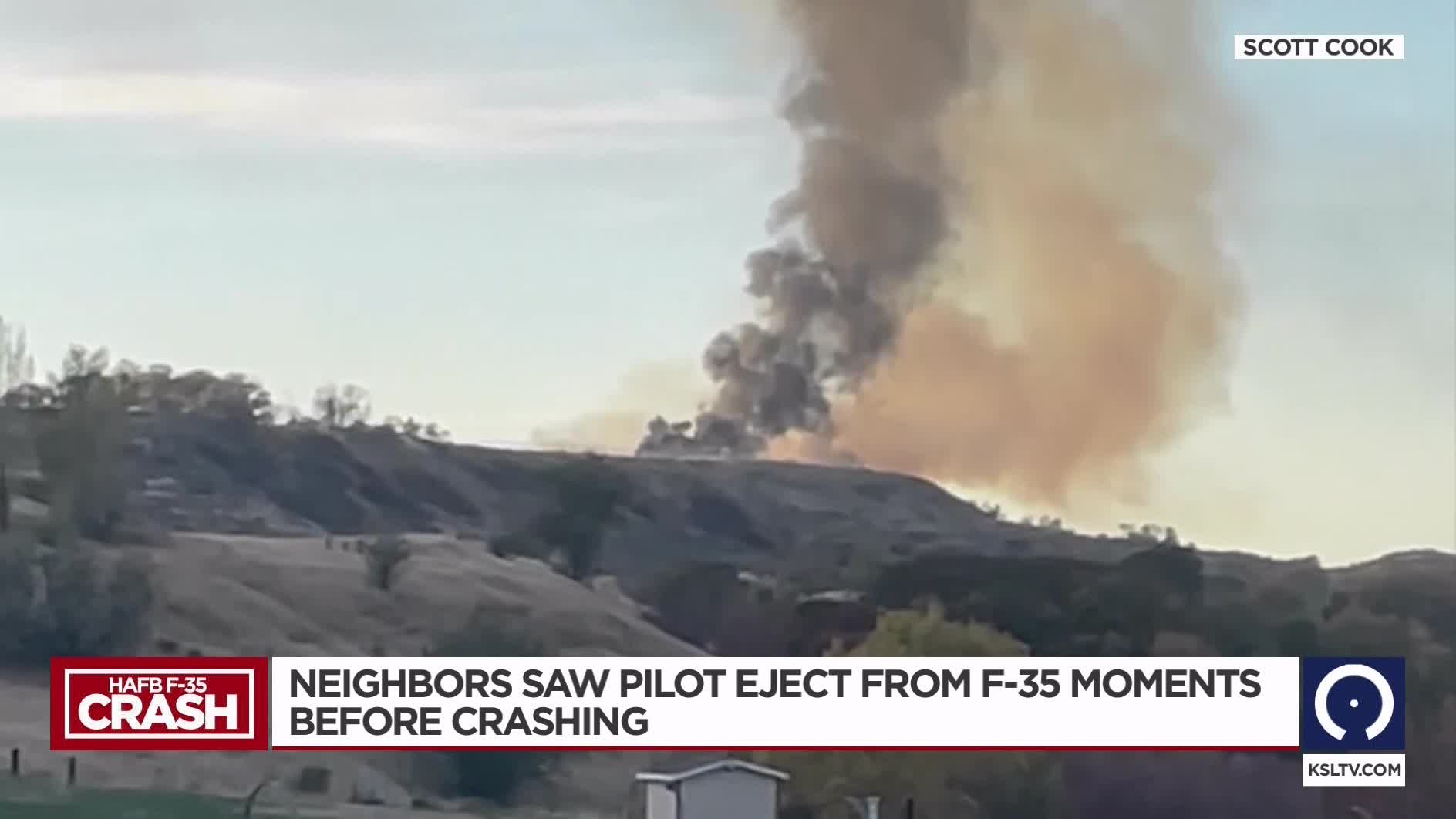 Two other nearby residents told KSL-TV they each happened to be standing outside when the F-35s flew over. One man explained he was sitting on a horse in a field behind his grandparents' home. He frequently watches the F-35s and described hearing a noise he had never heard before, and one of the aircrafts suddenly dip. He described seeing the pilot eject from the jet into the trees in the hill below, while the F-35 crashed on the ground.
