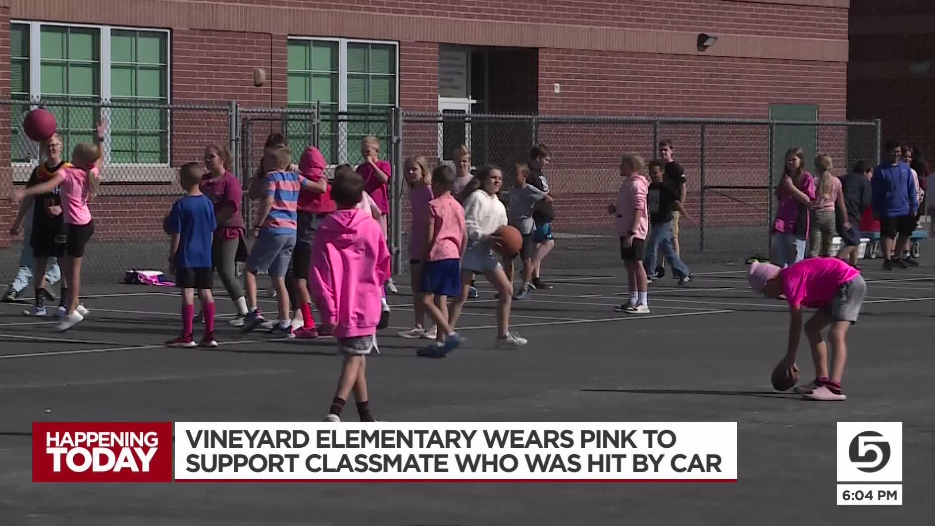 VINEYARD — Students and staff at Vineyard Elementary School wore pink shirts, socks and shoes on Friday in a show of support for 11-year-old Ryder Pearson who was hit by a car last week.