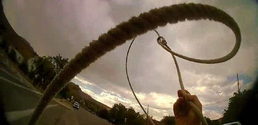 In the video, a fellow deputy had a warning for Edwards as she carried the lasso past homes and neighborhoods.