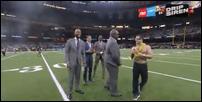 The video shows clips from multiple competitions where the band director pushes Hubbard to each spot and then ducks behind the chair for a few seconds before pushing him to the next location.