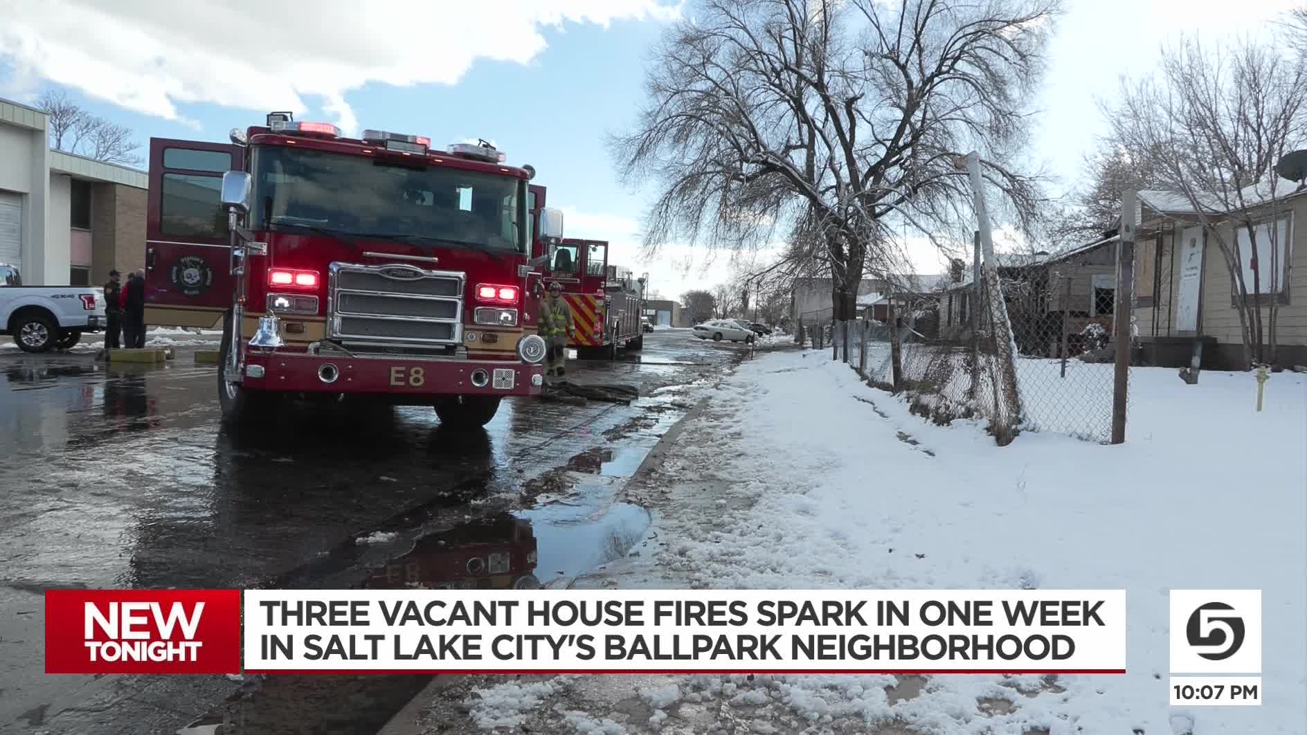 SALT LAKE CITY — Salt Lake City firefighters were once again called to a house fire in the Ballpark neighborhood Friday. That makes three fires at the same row of vacant homes in just the past week.