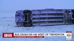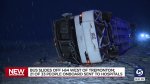 The bus, operated by Salt Lake Express, was traveling east from Boise to Salt Lake City at around 4:30 a.m. when the crash happened, according to Utah Highway Patrol Sgt. Cameron Roden. He said it appears that the driver lost control while making a lane change on the slick road about 5 to 7 miles west of Tremonton, causing the bus to slide off the road before it rolled onto its side.