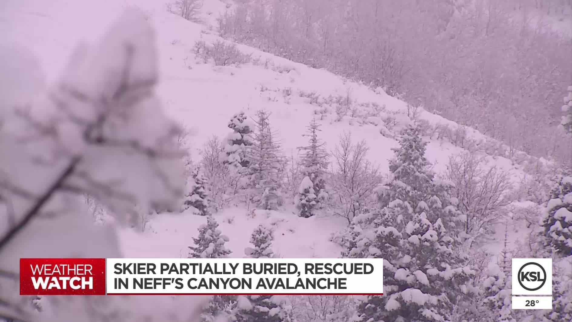 MILLCREEK — A skier who was partially buried in an avalanche in Neffs Canyon and suffered a broken leg was finally brought off the mountain Wednesday evening following a daylong rescue effort.