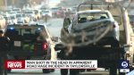 The victim's vehicle came to a stop after crashing into the I-215 overpass a short distance away.