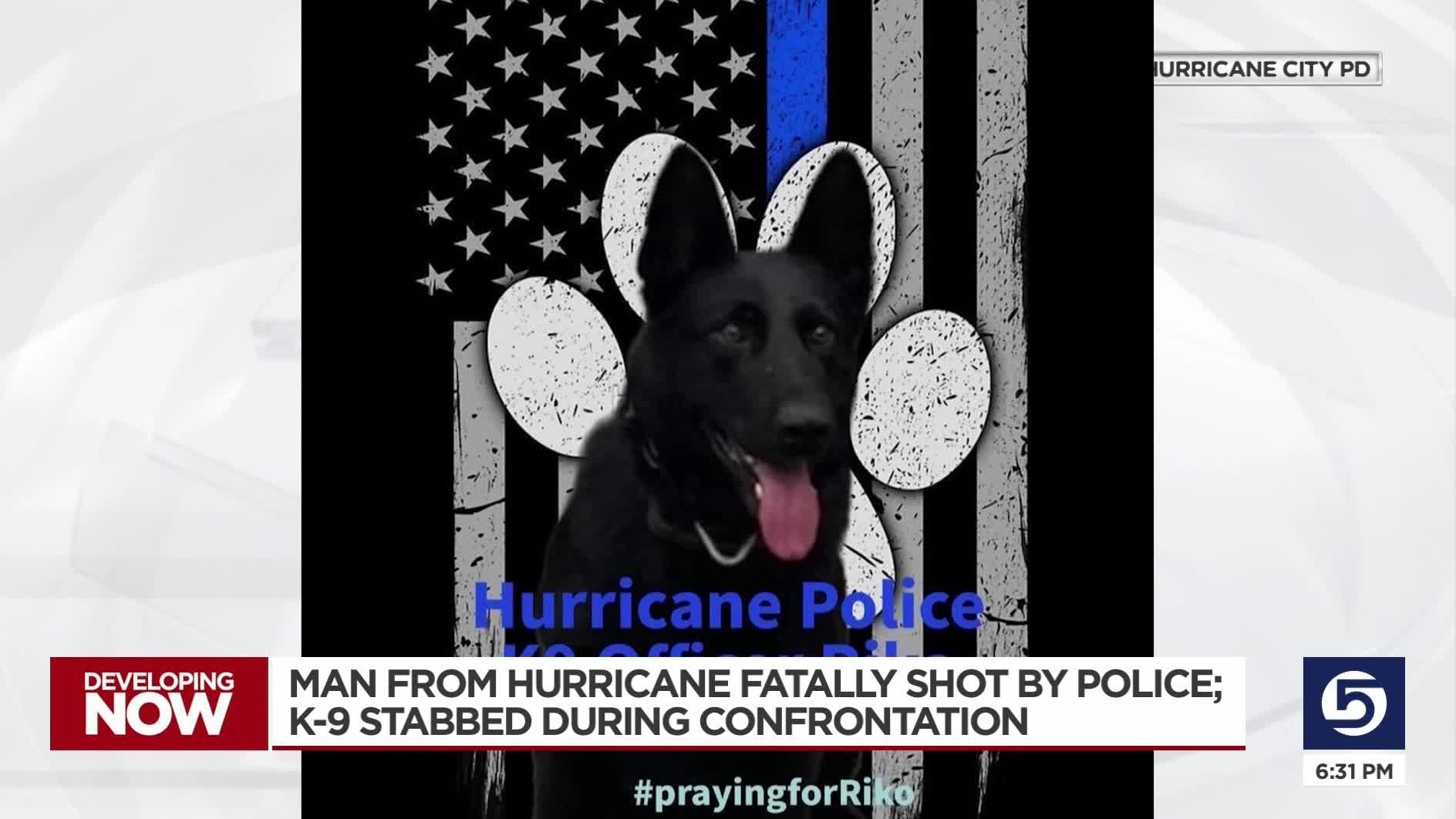 "We send our condolences to the family of the deceased. And our hearts and prayers are currently with our K-9 that was injured and his partner and family as we all are hoping for the best possible outcome," Hurricane police said in a prepared statement.