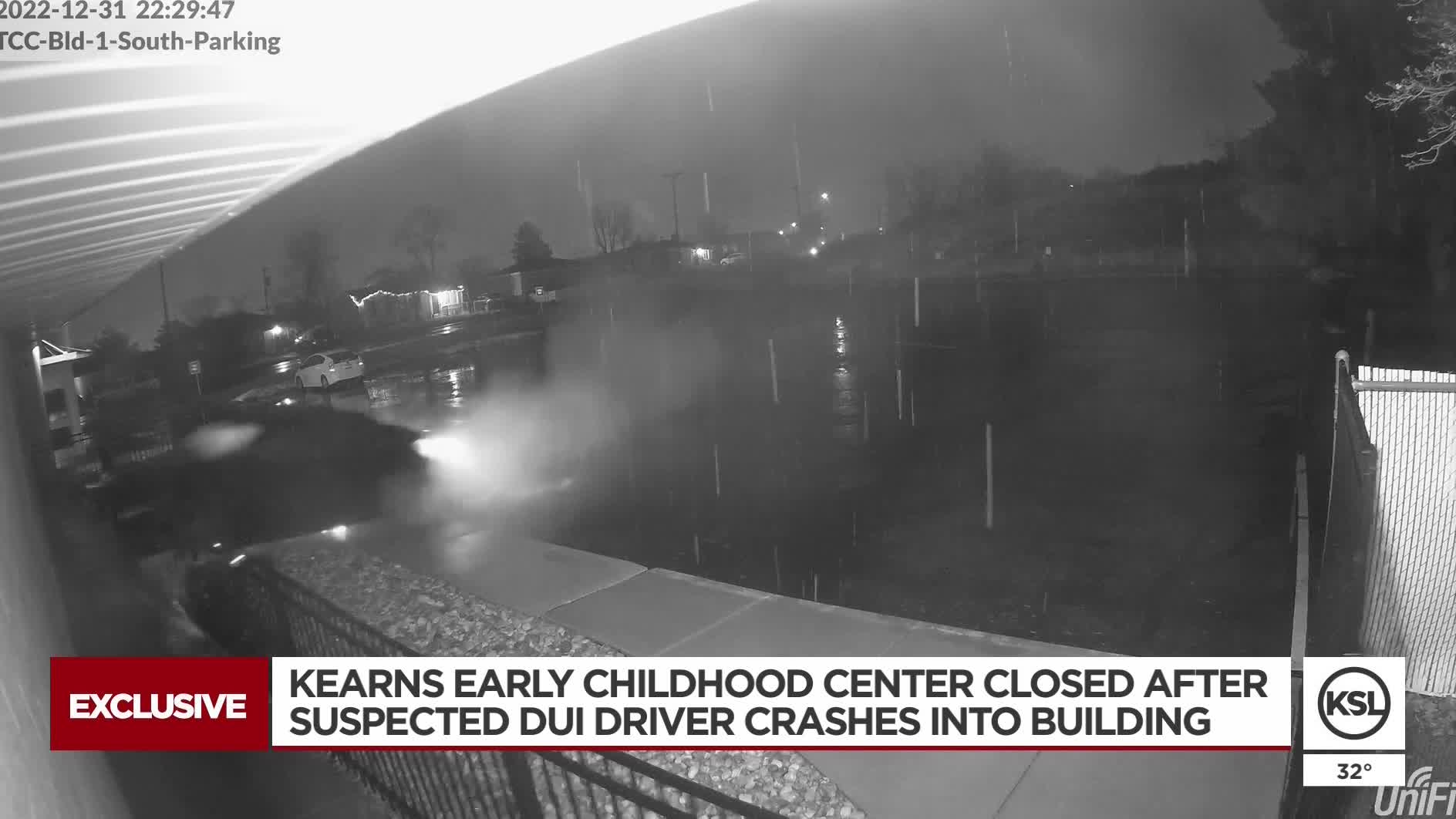 KEARNS — A suspected drunken driver was caught on security footage launching their car from a hillside and crashing into the wall of a children's community center. The Kearns Early Childhood Head Start program is now trying to figure out how to move forward because the building may not be safe to let children back inside.