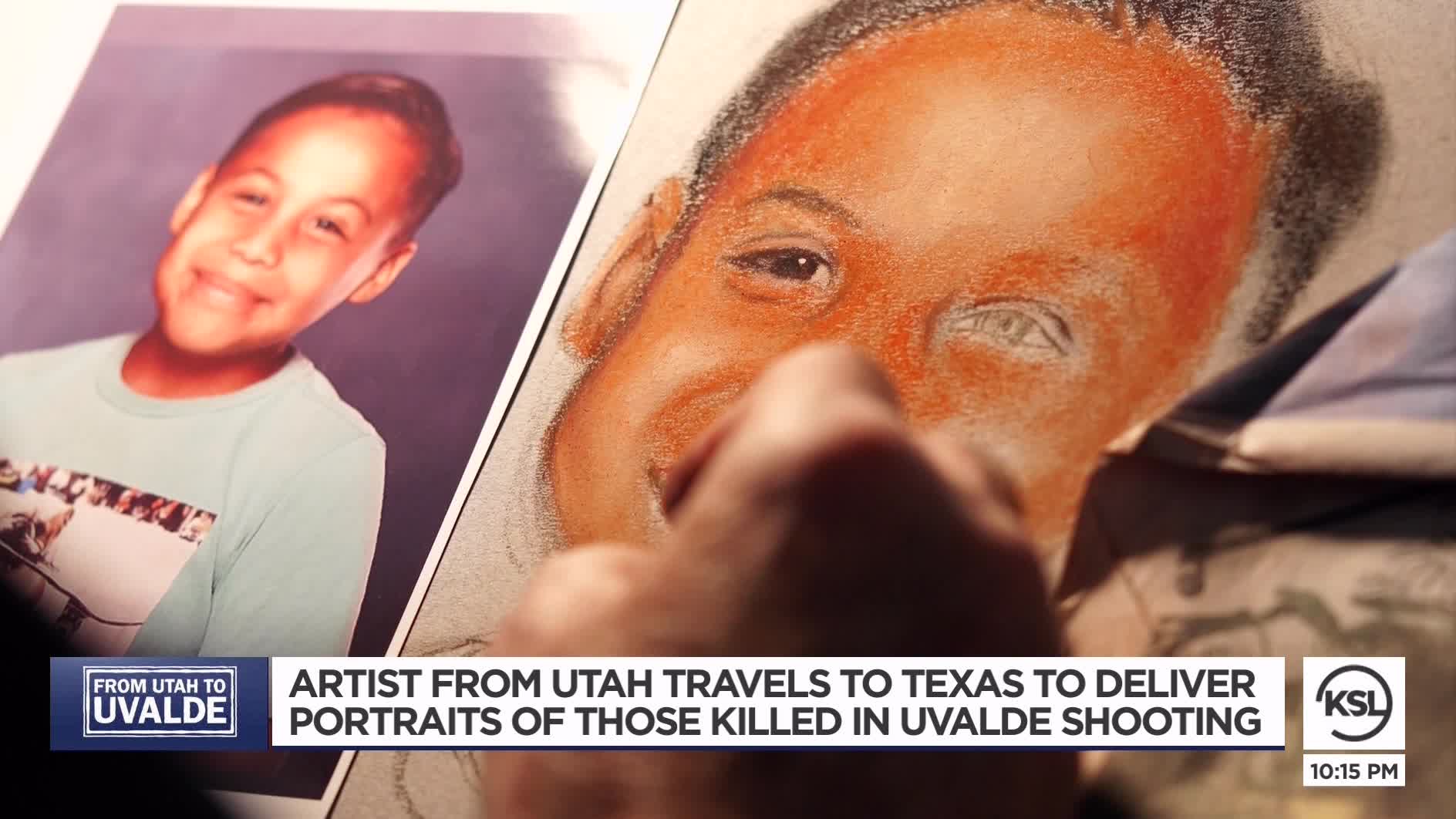 Exclusive: A Utah artist with a special deliver to the small town of Uvalde, TX. A portrait of all 21 victims. I traveled with him as he met the families face to face. A story I'll never forget. @KSL5TV at 10 #uvaldestrongpic.twitter.com/VY6F6Cr7pX