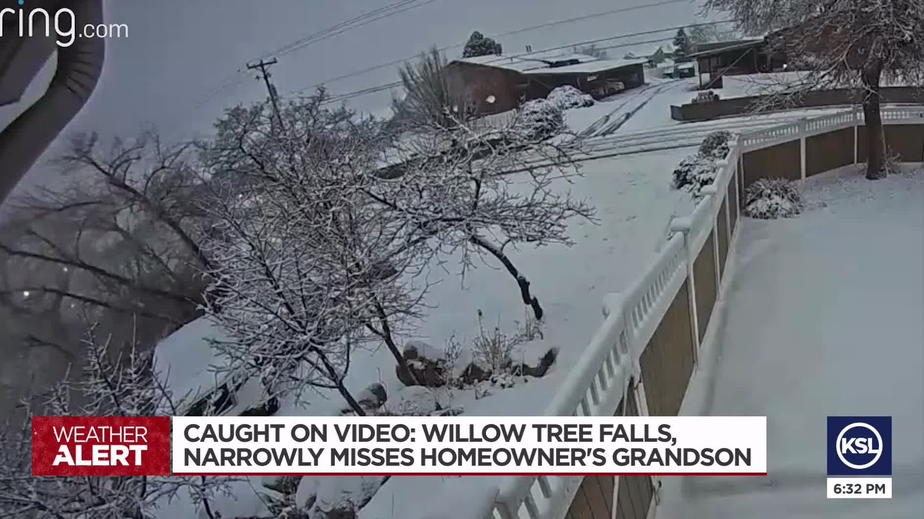 LAYTON — A Layton family is grateful that no one was hurt when a giant willow tree crashed to the ground at their home Wednesday and narrowly missed the homeowner's grandson.