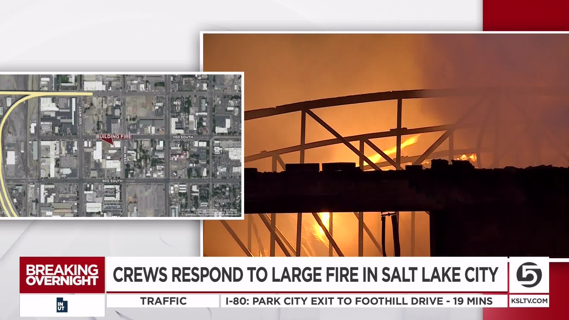 SALT LAKE CITY — Firefighters say 700 South will remain closed for most of the day near 400 West as they battle a fire at an abandoned warehouse.