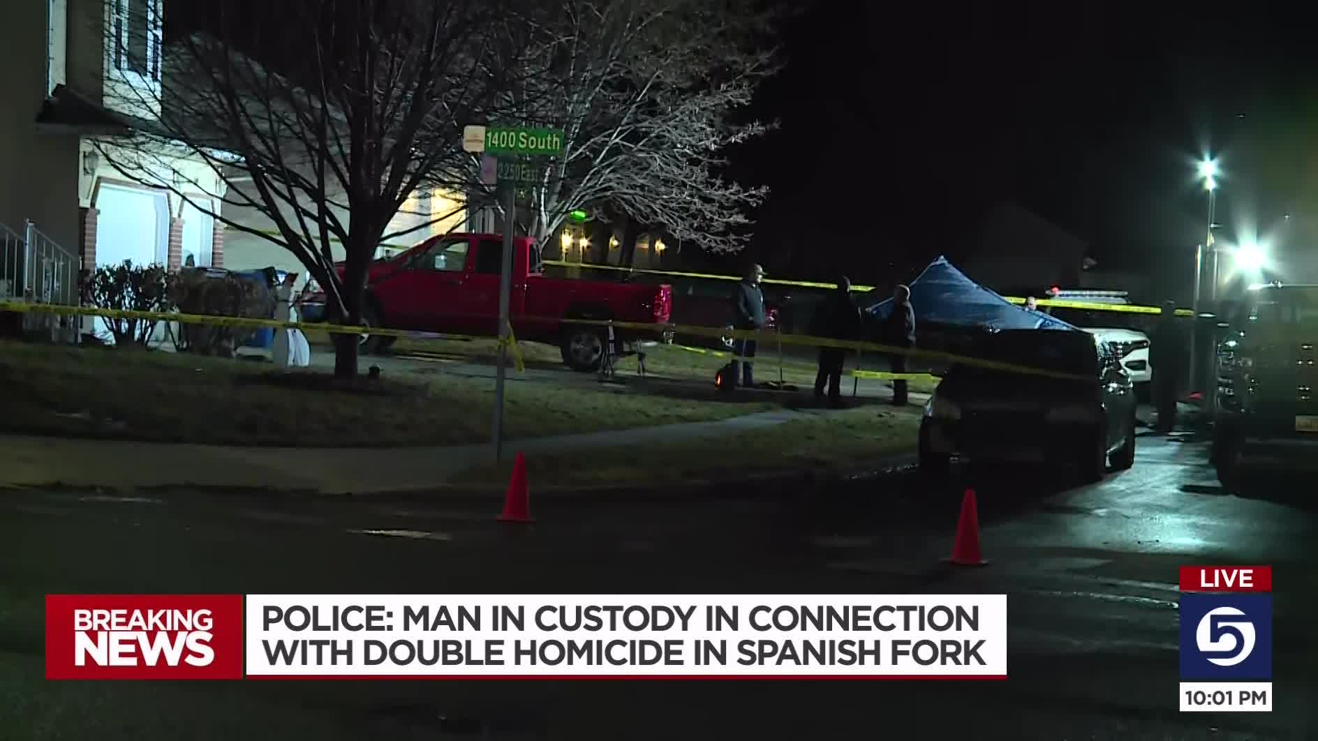 SPANISH FORK — A man and woman were found dead inside a home in Spanish Fork on Tuesday in what police are calling a double homicide, and the couple's son has been taken into custody as a person of interest.