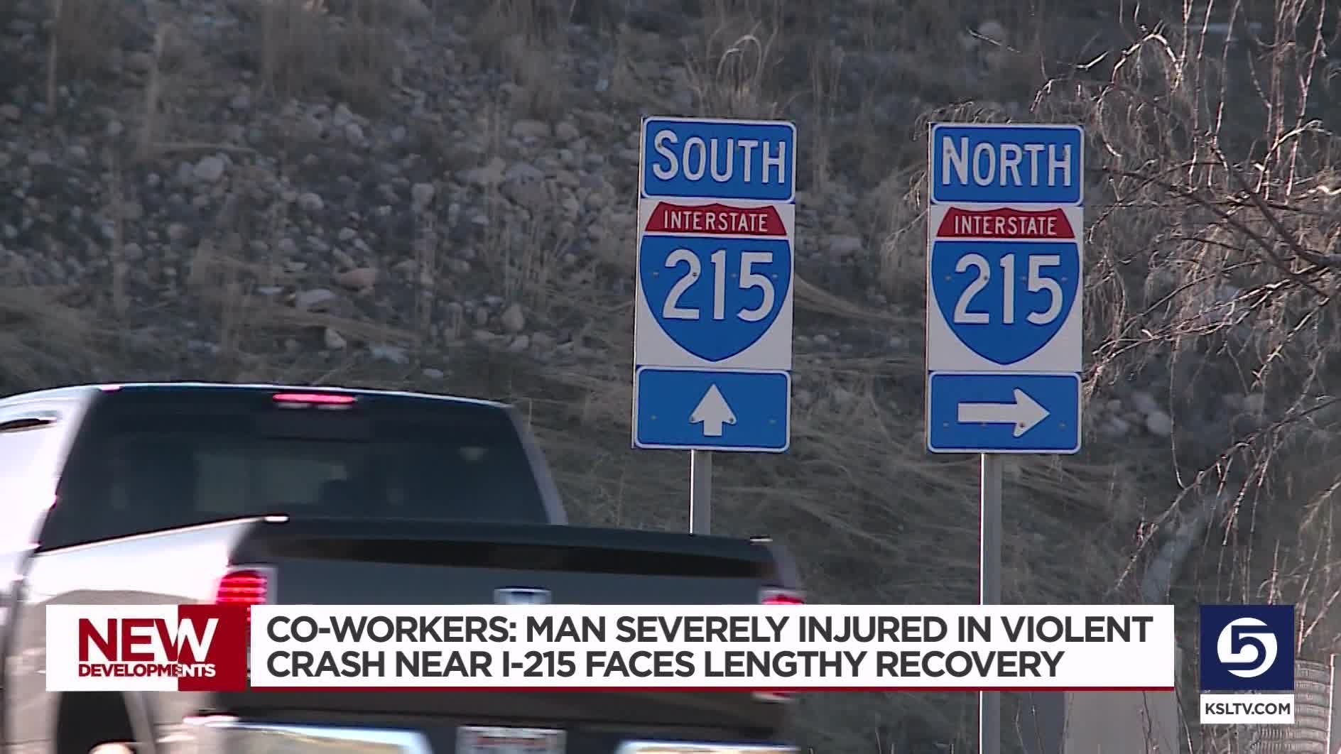 SALT LAKE CITY — Two weeks after a violent collision off the Interstate 215 west belt left a driver critically injured with extensive injuries, co-workers of the man said he remained in a medically-induced coma while facing a long road to recovery.