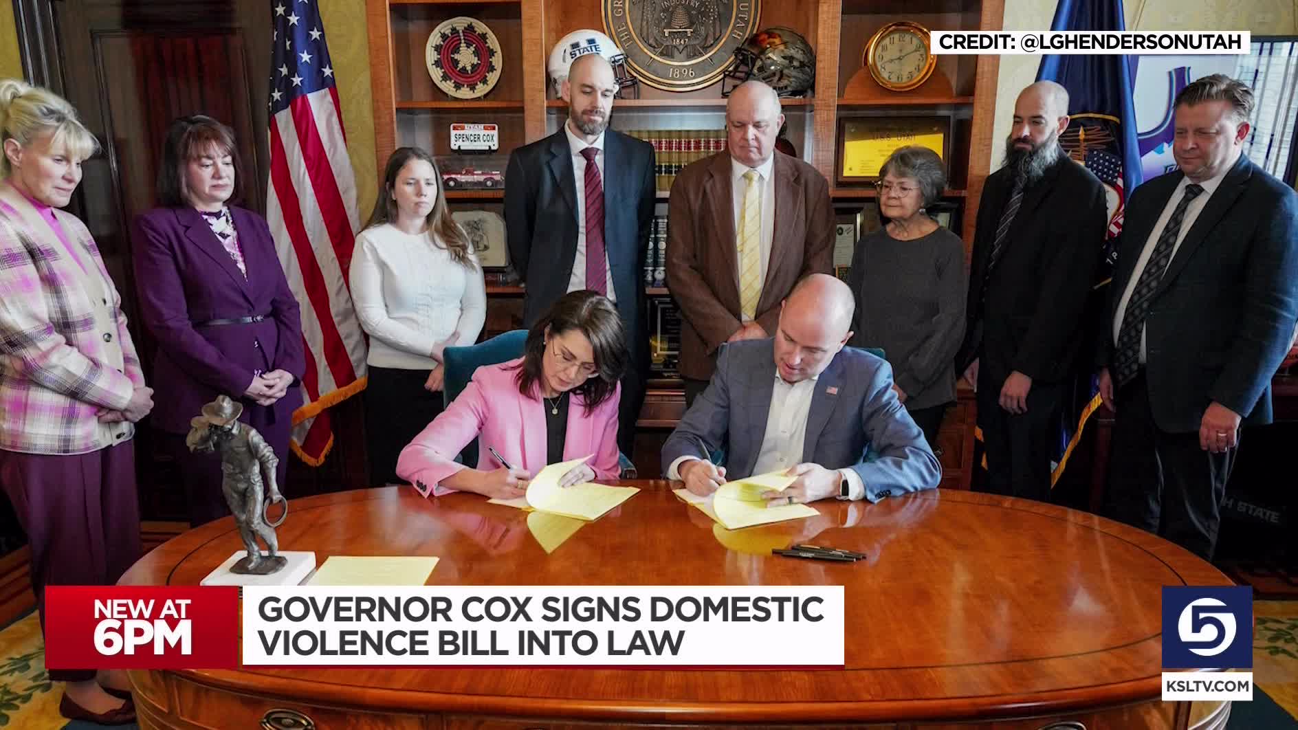 "After a lot of hard work, the Mayne family joined me as Gov. Cox signed SB117 into law today," Henderson said on Twitter. "I'm looking forward to the ceremonial signing of all the great domestic violence-related bills that came out of session."