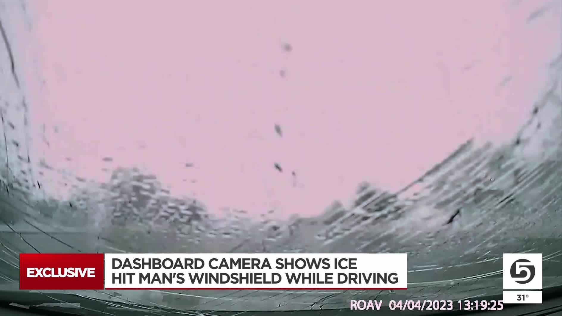 Wilkinson said he's thankful he was alone in the car at the time and that he wasn't a few feet closer because he thinks that hard chunk of ice could have killed him.
