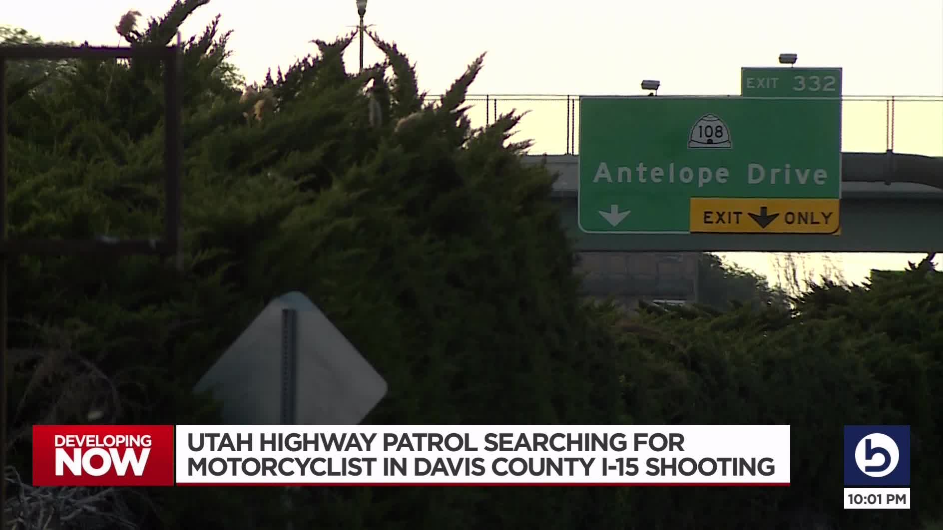 Witnesses on northbound I-15 in the Layton Hills Mall area said they saw two people riding a Harley Davidson motorcycle when the driver of the bike pulled out a firearm and shot at a silver car, Utah Highway Patrol Sgt. Cameron Roden said.