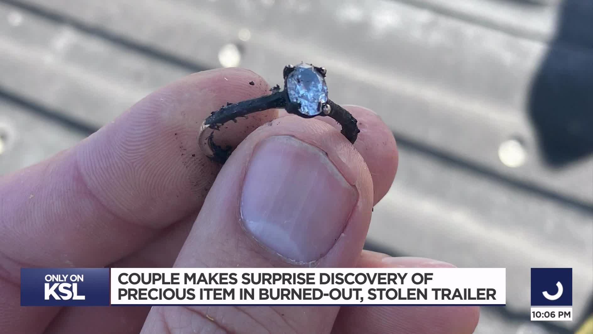 DENVER — A Utah couple expressed gratitude and relief Monday after uncovering an engagement ring in the burned-out remains of their stolen trailer.