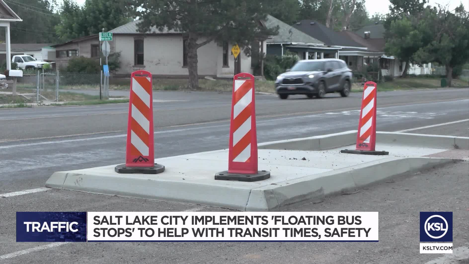 To make the experience more reliable for bus users, the city has implemented several floating bus stops that move the bus stop from the sidewalk out into the street. They're being installed along stretches of 200 South and 400 South.