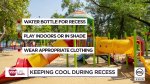 Pimsakul recommends students take a water bottle to school for recess, play indoors or in the shade, and dress in light clothing that provides appropriate sun protection.