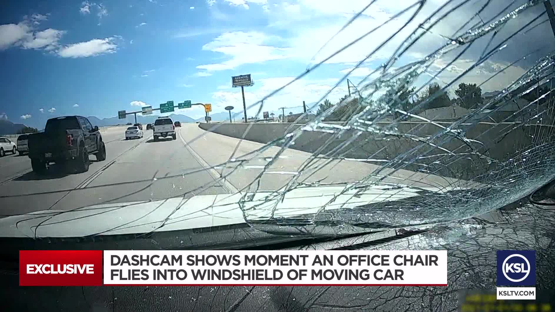 LEHI — A Lehi family is grateful their dash camera recorded the moment when part of an office chair was catapulted into their windshield.