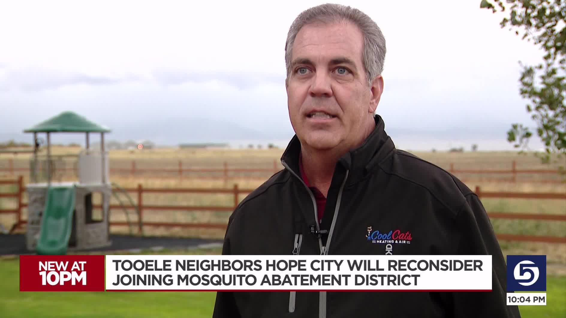 The two said their properties border Tooele City, which doesn't participate in the mosquito abatement district. They believe mosquitoes from the city are inundating their yards.