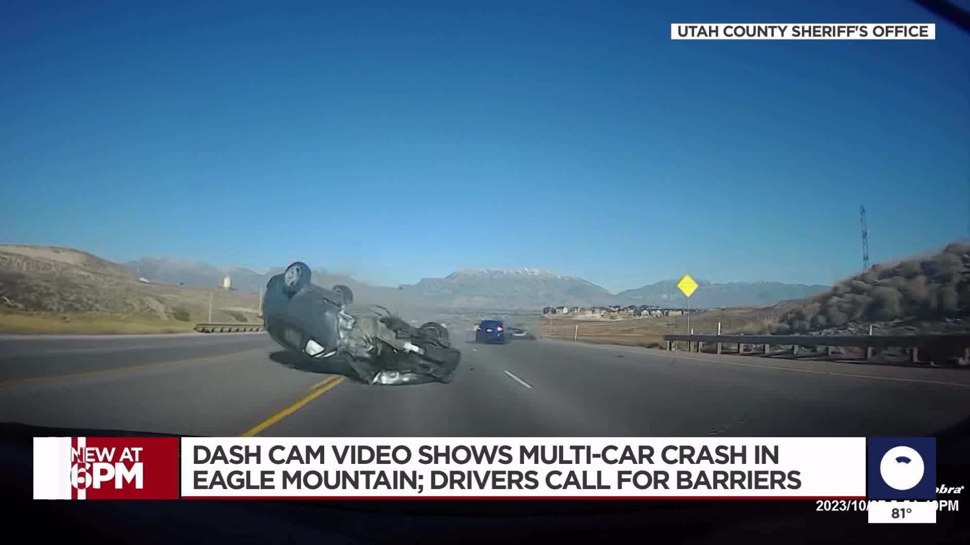 EAGLE MOUNTAIN — There are new concerns about driver safety on a dangerous road in Utah County as recent dashcam video shows the moment a 17-year-old driver drifted over the center lane and crashed into three cars.