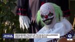 Don Smith and his neighbor Terry Fleming have been combining their front yards for seven years now to create "Nightmare on Clown Street." Their yards fenced off with scary clown heads lined up on top of the railing.