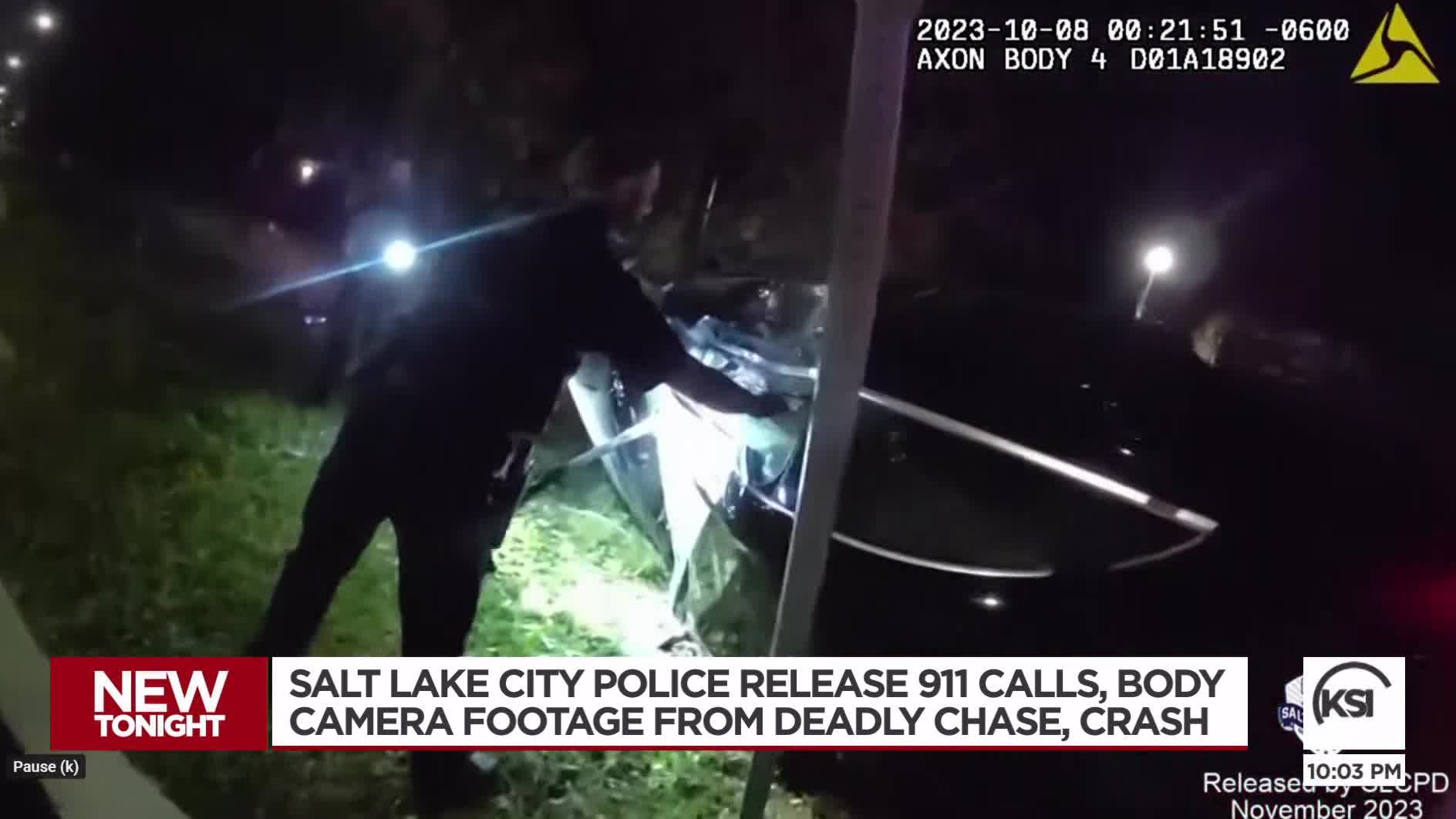 Salt Lake police released three body camera videos Wednesday from officers involved in a pursuit that ended with the suspect vehicle crashing, resulting in the death of the passenger, 21-year-old Douglas Rodriguez.