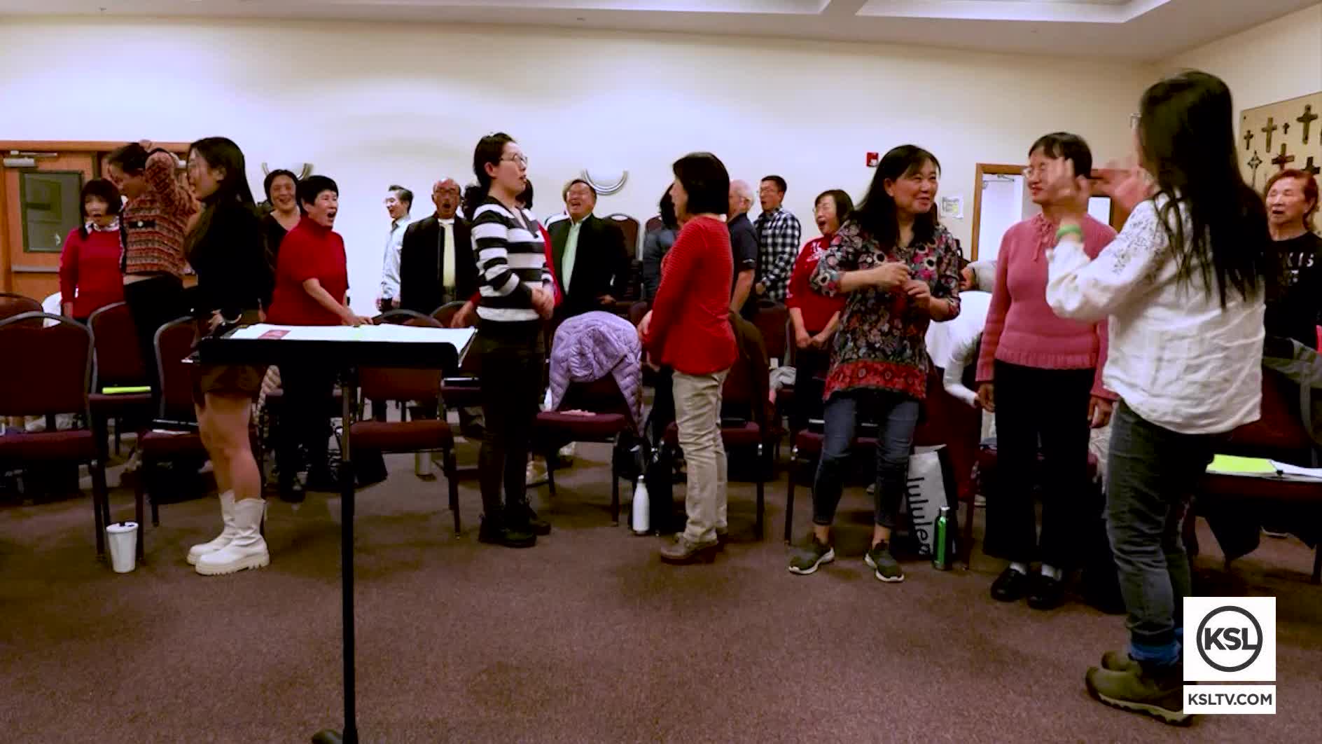 As the Salt Lake Chinese Choir warms up, the different choral parts — soprano, alto, tenor and bass — blend together. Once the conductor takes the stand though, their voices meld and their unity sings through. Choir members describe the experience like being a part of a big family.