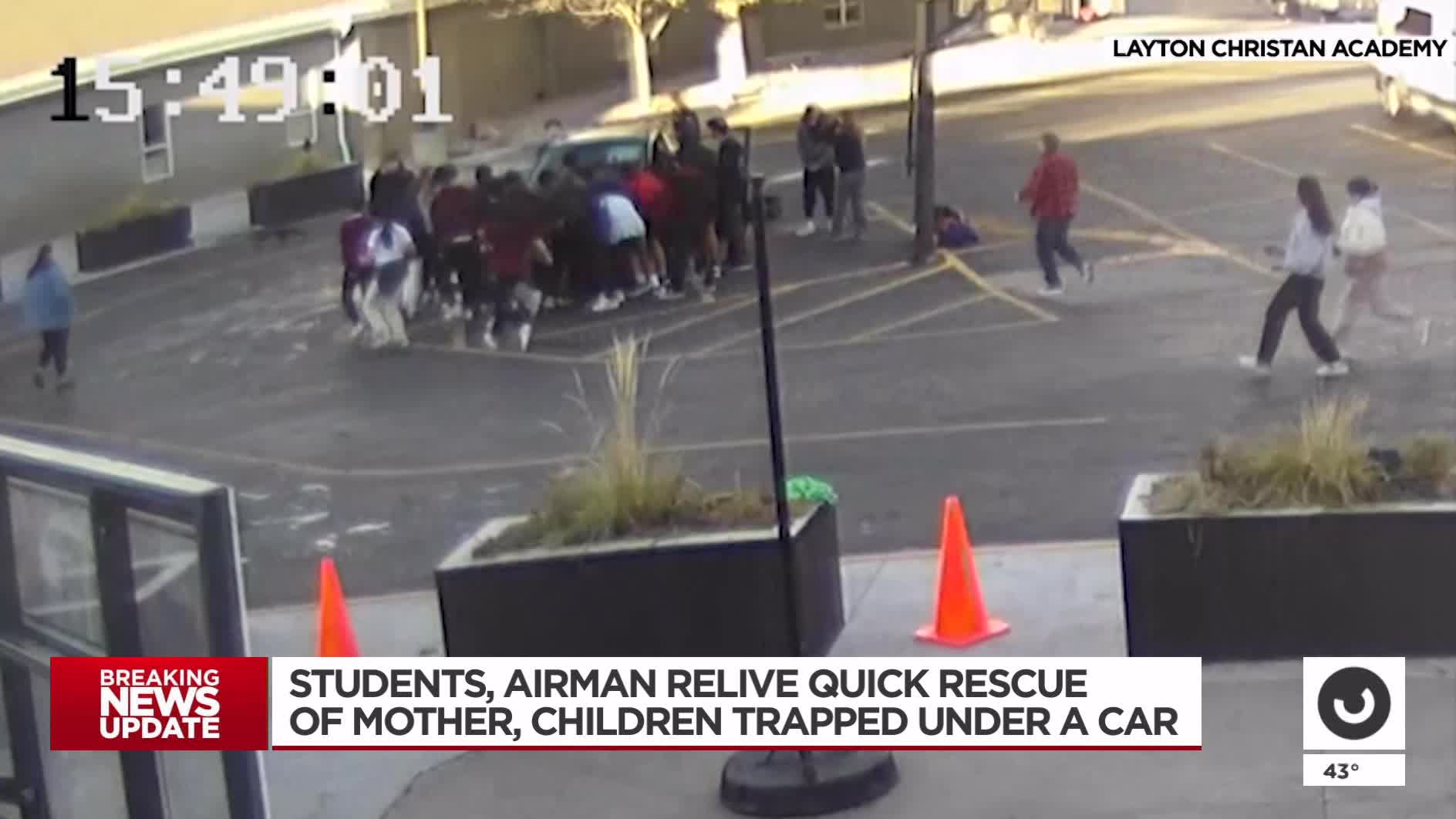 LAYTON — The group of around 20 students and an airman from the nearby Hill Air Force Base are sharing their account of rescuing a mother and her two young children who were pinned underneath a car.