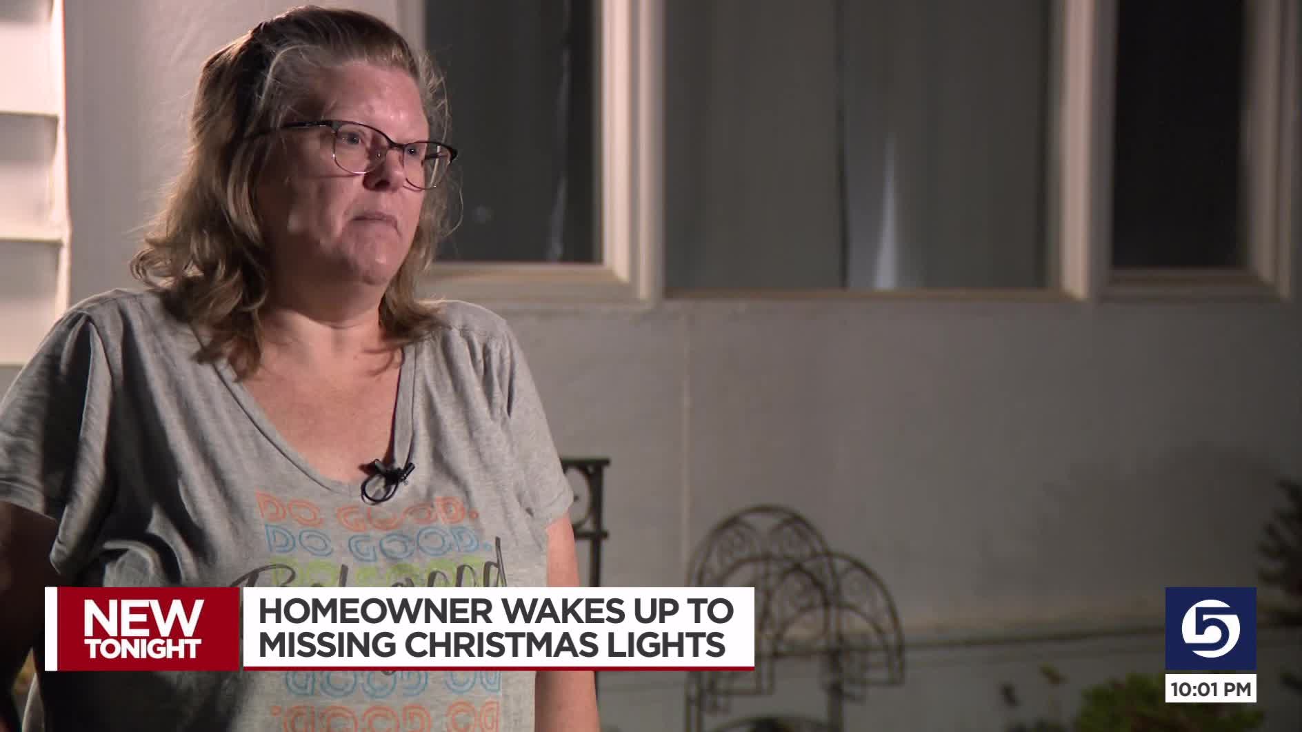 Myken Smith said the thieves somehow got to the roofline and took down two strands of lights as well as lights from her fence and bushes. The decorations and garland on her porch railing were also stolen, as well as a wreath and even a doormat.