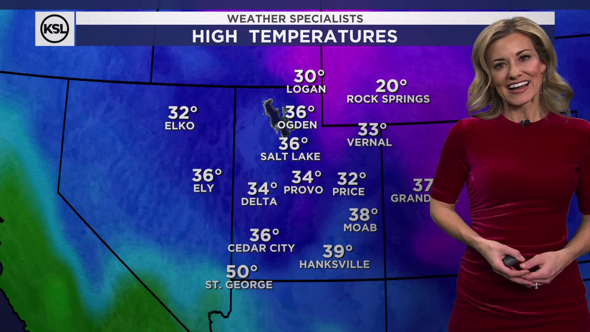 Partly cloudy conditions with highs in the low-to-mid 30s are forecast across the Wasatch Front, while high temperatures may only reach the upper 20s in parts of northern Utah. Highs closer to 40 degrees are forecast for high-elevation parts of central and southern Utah.