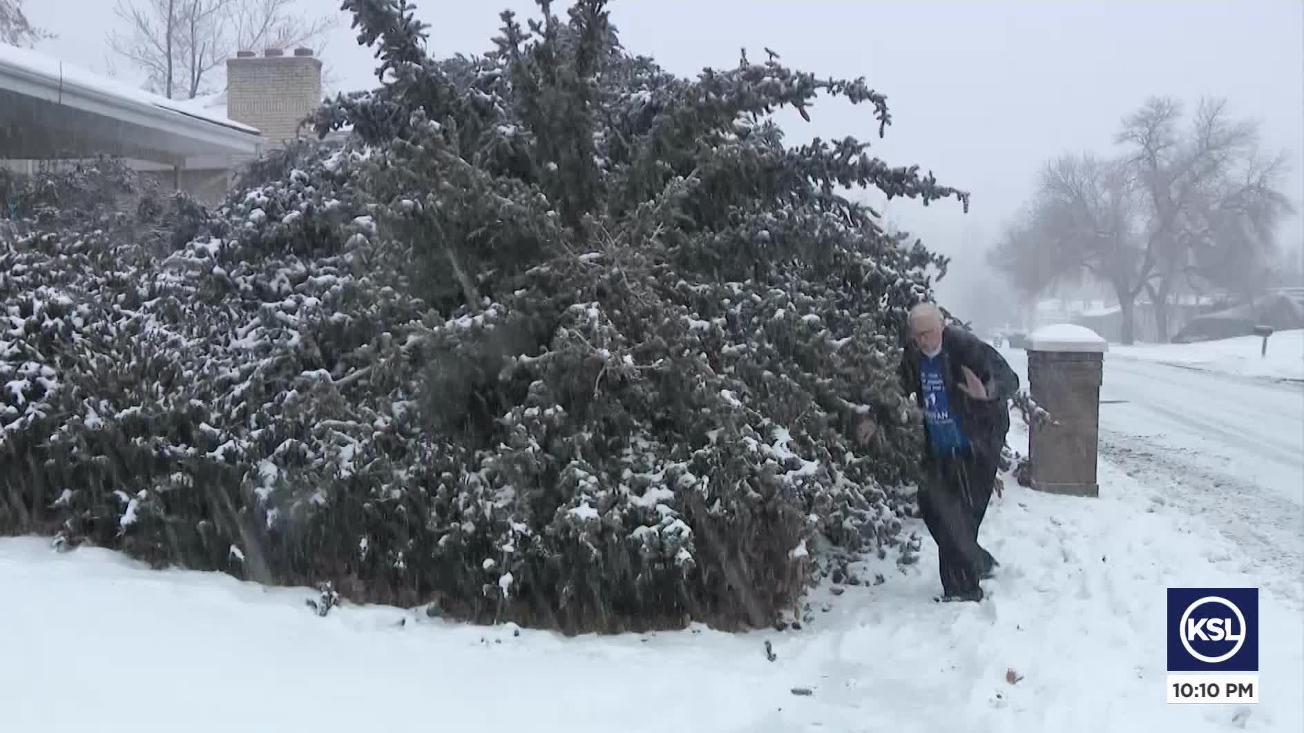 COTTONWOOD HEIGHTS — An 85-year-old man was almost seriously injured or even killed after a tree fell on him during one of Utah's recent snow squalls.