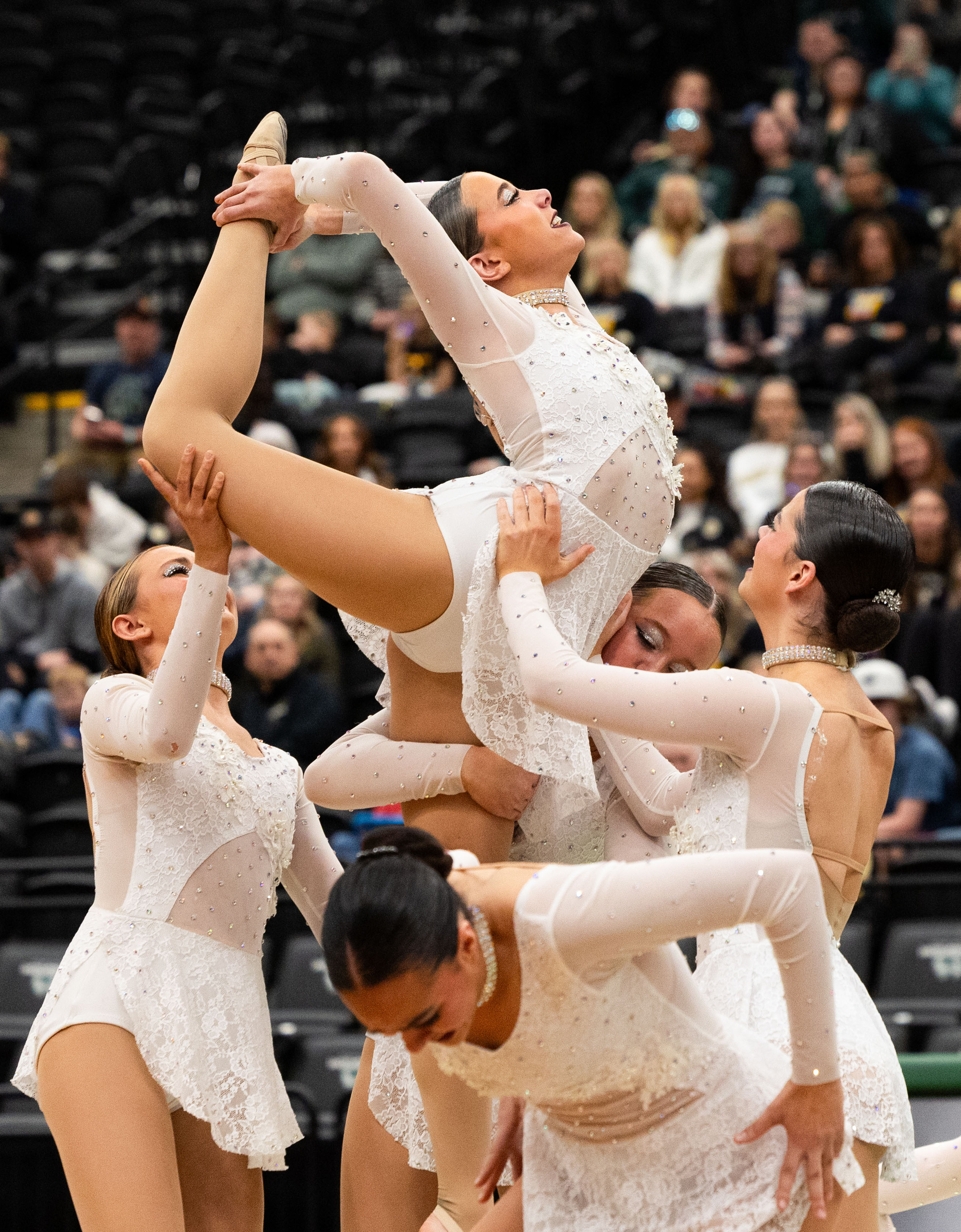 Davis High School’s drill team competes during the 6A state drill team championships at the UCCU Center in Orem on Friday, Feb. 2, 2024. (Photo: Megan Nielsen, Deseret News)