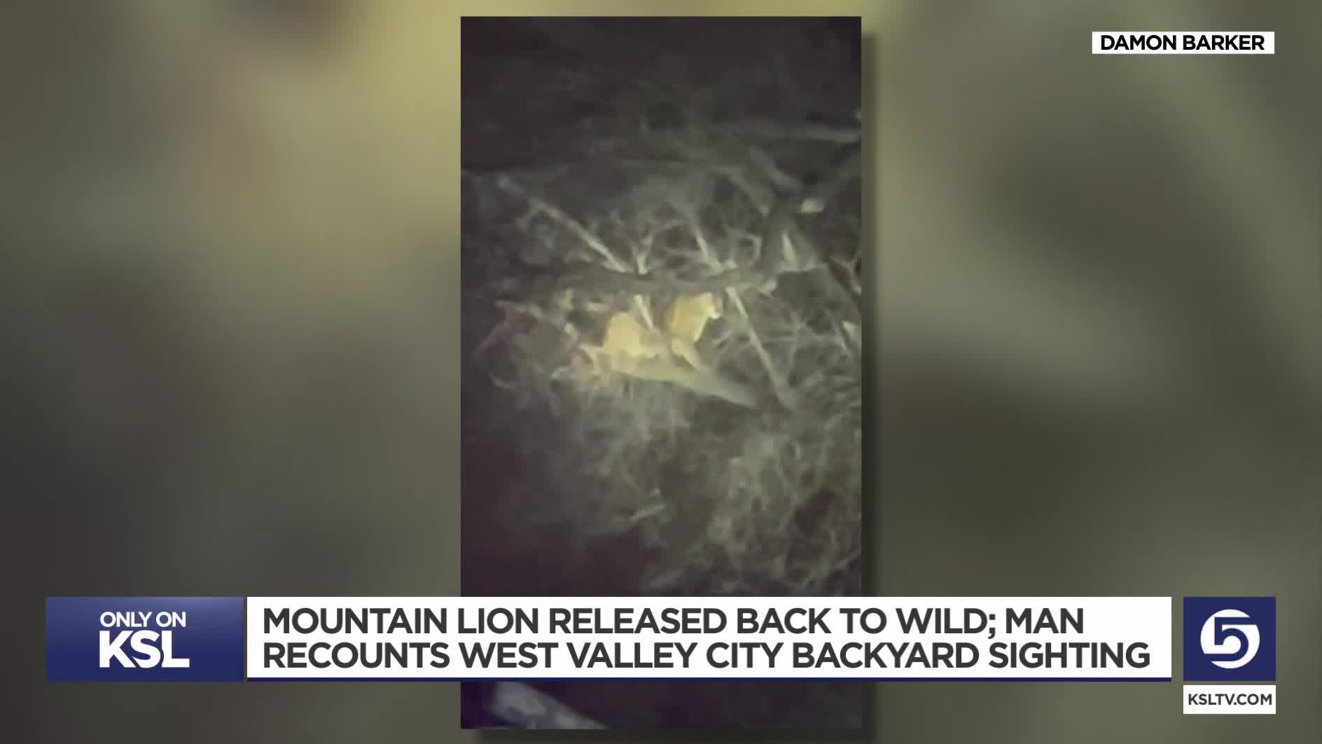 "As I was talking on the phone, I was staring up there the whole time, then seeing the tail move … that's a freaking mountain lion," Barker said in an interview with KSL-TV on Friday.