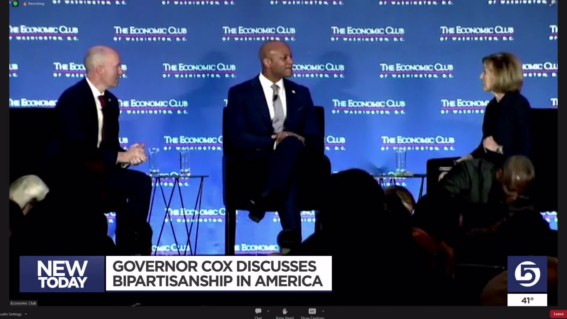 In an effort to promote disagreeing better, Cox joined Gov. Wes Moore, D-Maryland, on stage at the Economic Club of Washington, D.C., and answered questions about how government, states and communities can step up in how we respond to each other and get things done.