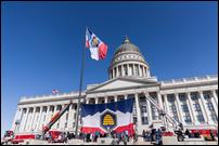Flags are passed out to the public during the commemoration of Utah Flag Day at the state Capitol in Salt Lake City on Saturday. A federal judge on Monday denied a preliminary injunction in a lawsuit that organizers of a flag initiative filed against the state over its initiative laws.
