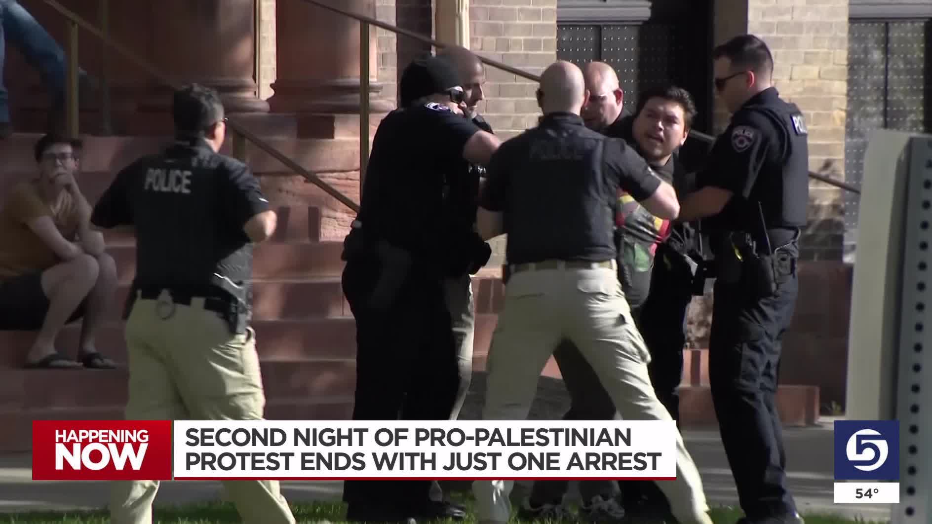 U. officials said the person was arrested Tuesday for investigation of disorderly conduct, trespassing higher education premises, failure to disperse based on Monday's protest, and for investigation of resisting arrest Tuesday. That brings the total arrest count to 20.