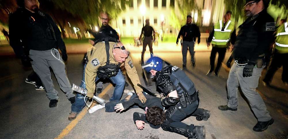 "On Monday, April 29, a peaceful student-led protest on our campus was met with a violent response from police in riot gear. We vehemently object to this unprovoked and unwarranted use of force against students and community members exercising their right to free speech," the open letter states.