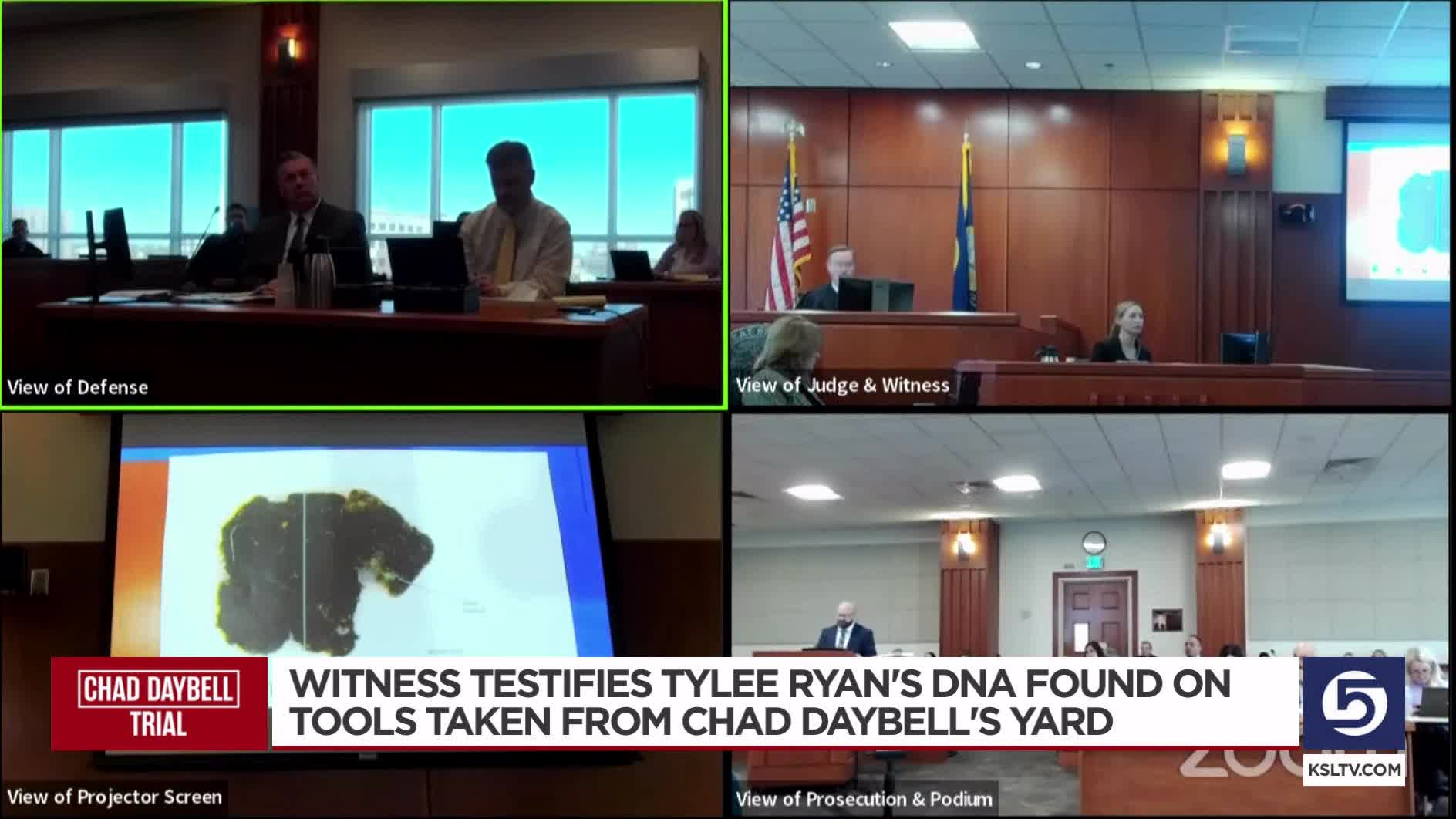 This included human remains found on tools that were carried into the courtroom, and Dace showed the jury where on the tools the remains — ashes and blood — were found. She said human remains on a shovel matched Tylee's DNA, and remains on a pick ax had a partial DNA profile that also matched Tylee.
