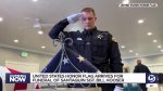 The first to hold and salute the flag was officer Jacen Harker of the Provo Police Department. The gloves he wore, along with gloves other honor guards will wear, will be presented to Hooser's family.