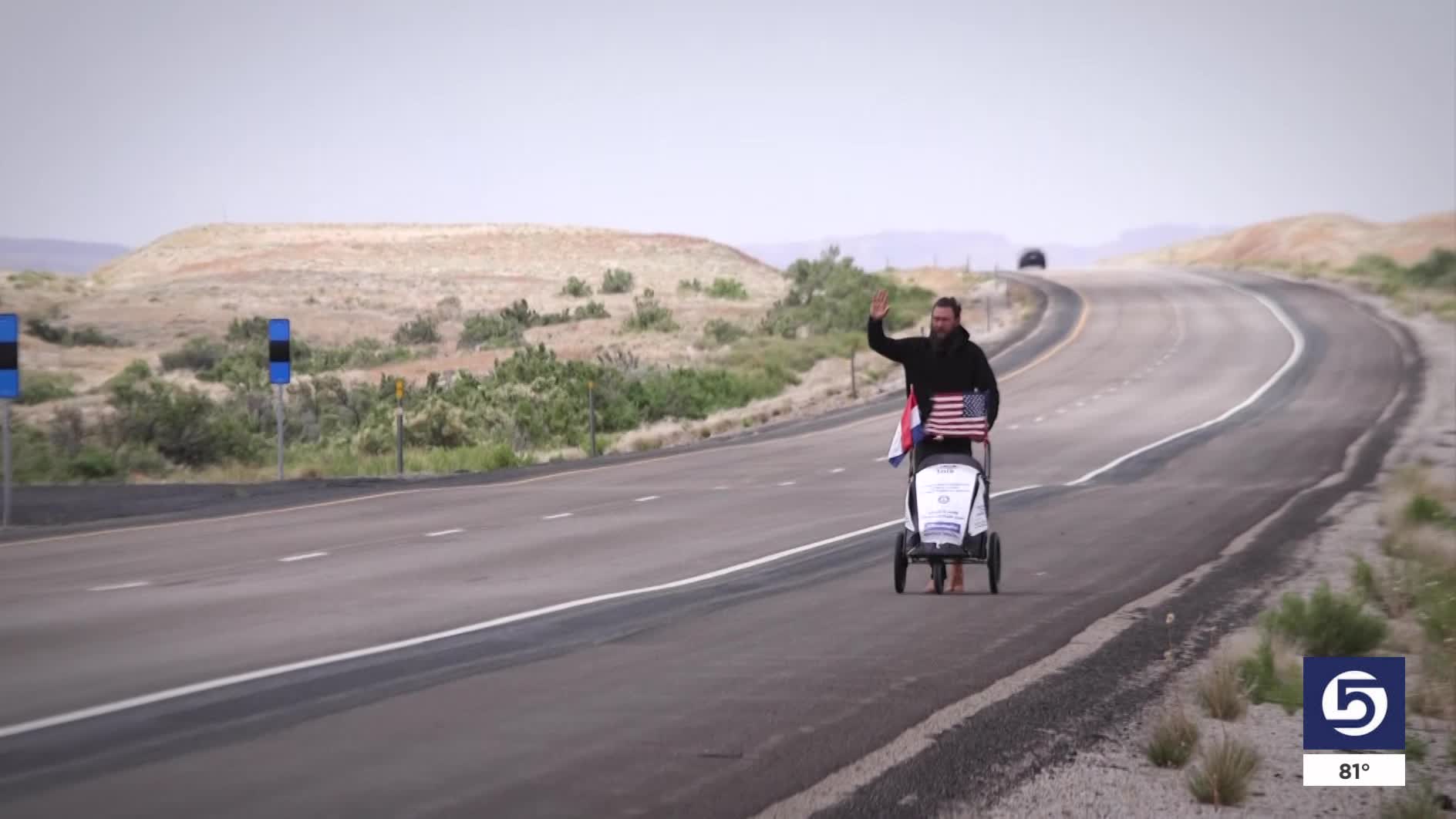 He's determined, he's upbeat, and he's known simply as the "Barefoot Dutchman." His goal, to break the Guinness World Record for walking barefoot — a total of 3,100 miles from LA to Times Square in New York.