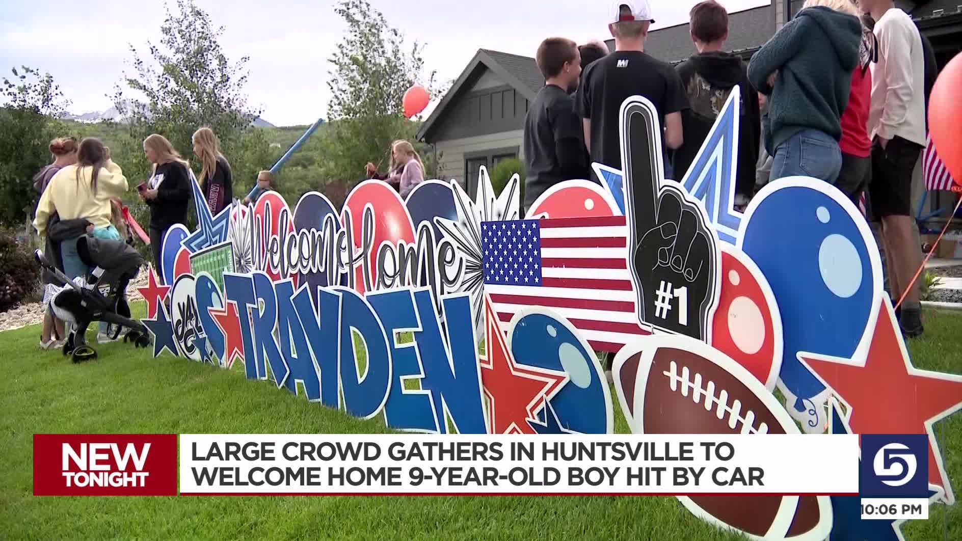 HUNTSVILLE, Weber County — A large crowd gathered Monday to welcome home a 9-year-old boy released from the hospital after a lengthy fight for his survival.