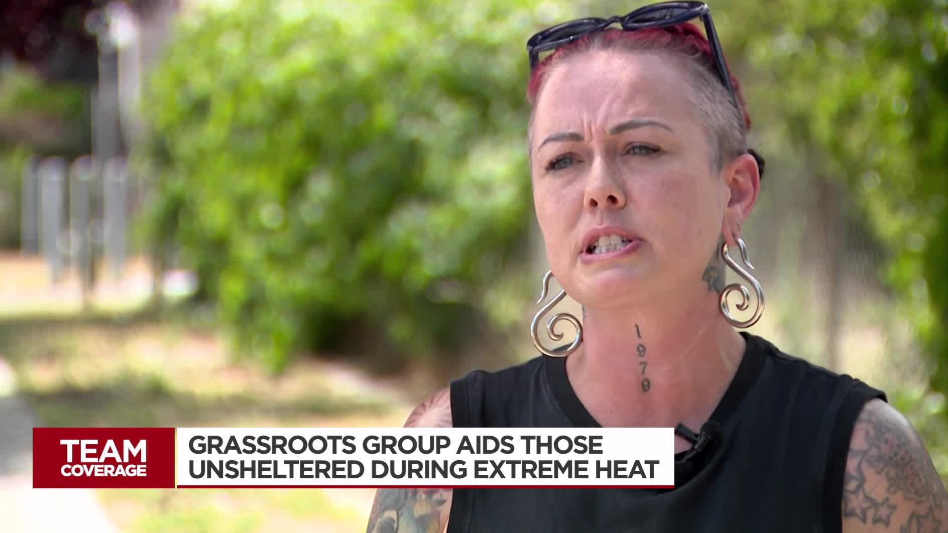 "We provide water bottles, electrolytes, like just those little packs that you see at the grocery store. We also have a gal that makes handmade … neck bandanas, so we soak them in ice water, give them to the folks," said Meg Orsini, a founding member of the group.