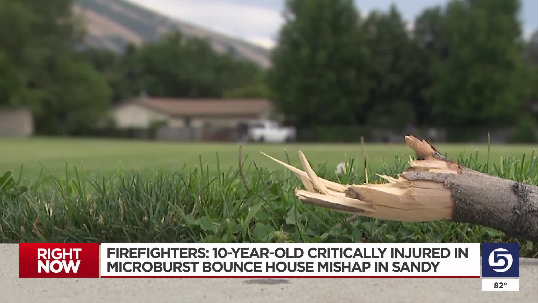 SANDY — A boy was critically injured Friday evening after microburst winds caused a bounce house to overturn in Sandy, firefighters said.