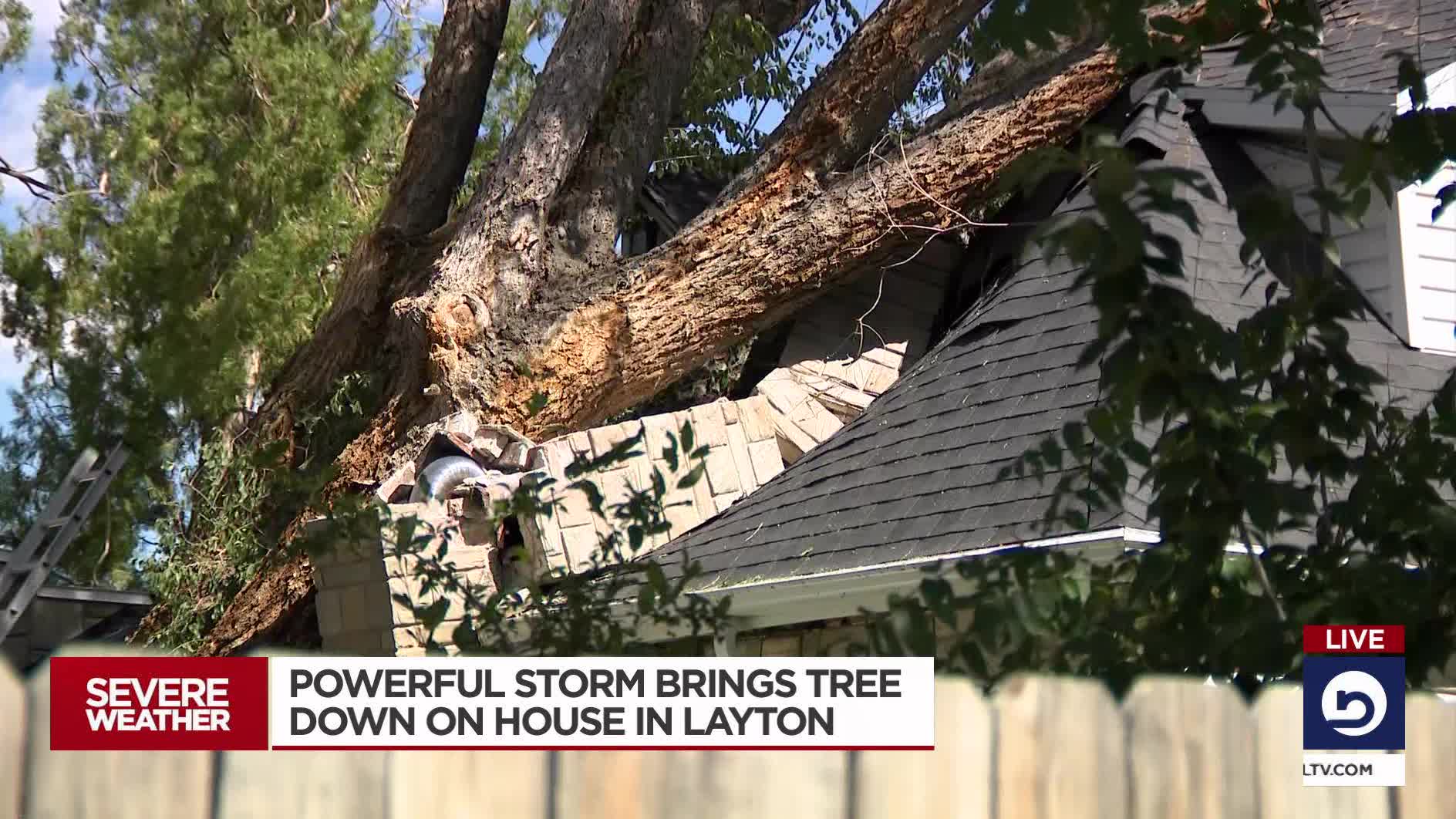 LAYTON — A Utah couple is out of their home after a huge tree came crashing through the walls and roof.