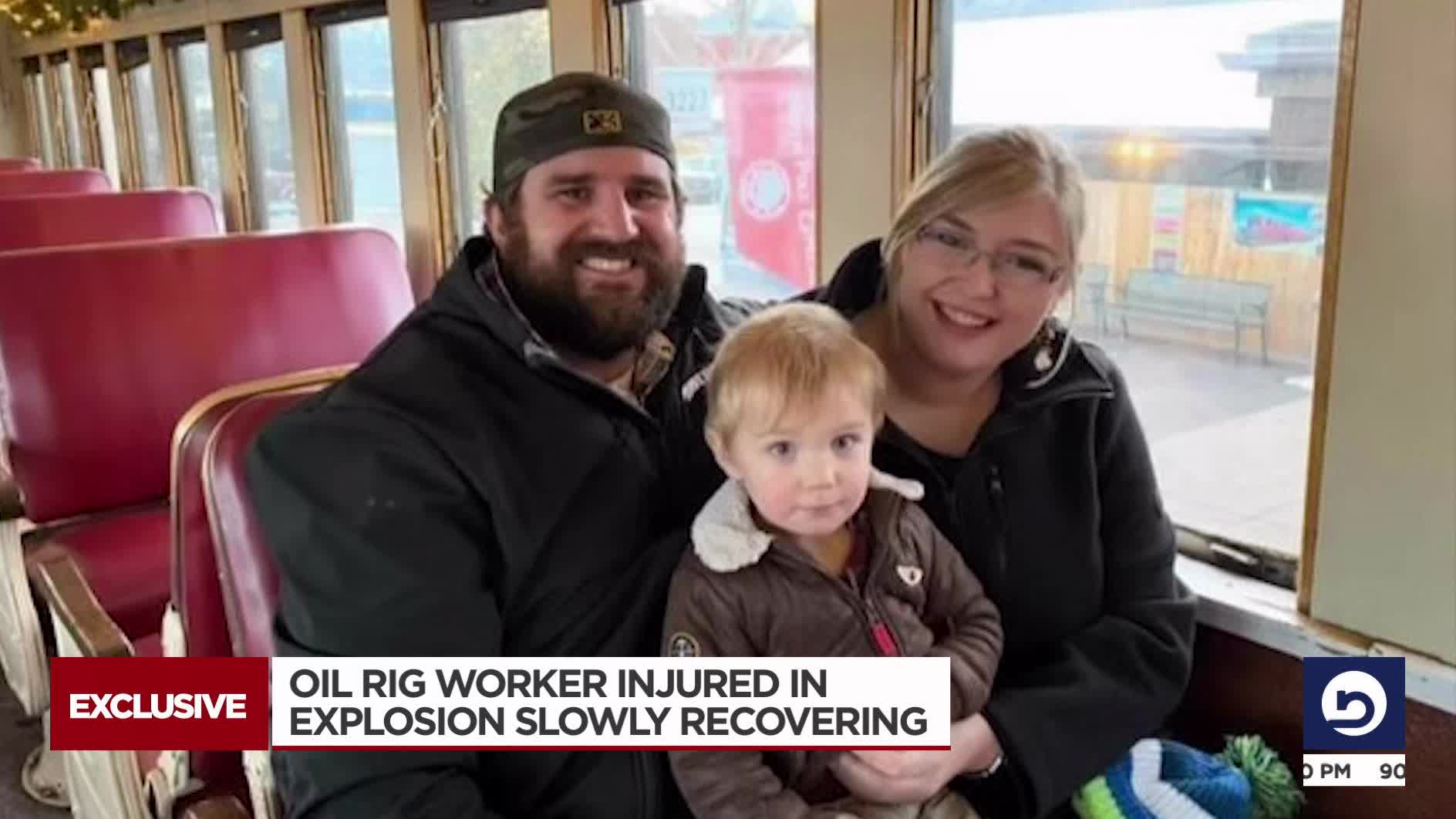 SALT LAKE CITY — The wife of an oil rig worker injured in an explosion said her husband is "doing well for the condition that he is in."